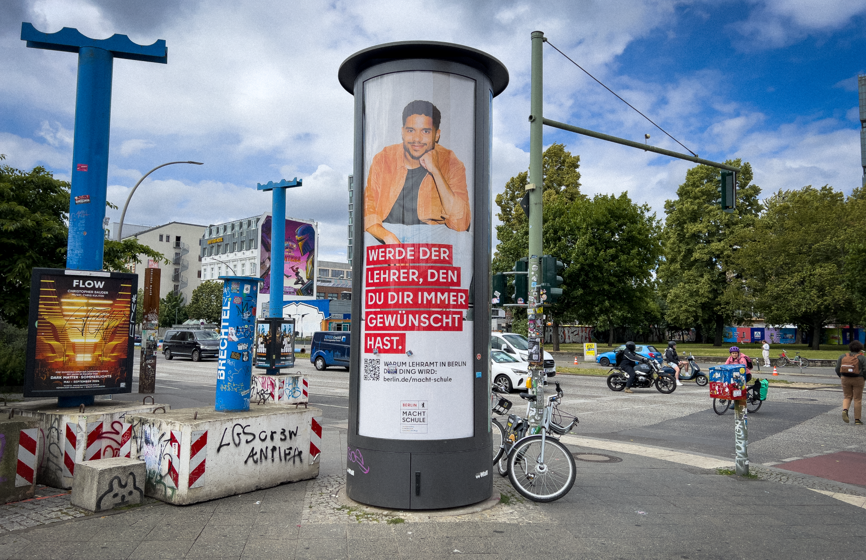 Von der Ideenentwicklung bis zur finalen Umsetzung war ich maßgeblich an allen visuellen Assets beteiligt. Gemeinsam organisierten wir ein Shooting, das echte Berliner Geschichten und Lehrkräfte in Szene setzte. Daraus entstanden plakatstarke DOOH-Motive, Social-Media-Inhalte und vielfältige Formate, die sowohl emotional als auch informativ überzeugen.